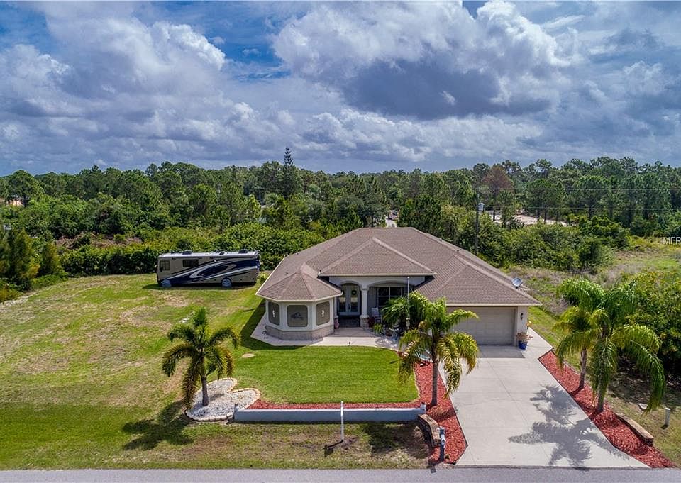 Can you imagine a Hurricane PROOF home? Well this is about as close as they come! HUGE DOUBLE LOT and BETTER THAN SOLID BLOCK Construction (Ask your Realtor about ICF Greenblock Walls). IMPACT Doors, Windows and Garage Door. Make this FORTRESS your home and sleep easy with the peace of mind every local and snowbird alike deserves. NOT in a FLOOD ZONE (X) and only 15 Blocks to the WATER/BOAT RAMP/FISHING PIER. This huge home boasts an open floor plan, GIANT square footage and enormous bedrooms. The MASTER SUITE HAS IT ALL, INCLUDING A WALK THROUGH SHOWER with DUAL HEADS and JETTED TUB. Upgrades are UNMATCHED in Gulf Cove with HUGE 12' Tray Ceilings, CROWN MOLDING, Whole home in-the-wall Central Vac System, a CHEF's DREAM KITCHEN with Granite Countertops, Solid Wood Cabinets and Stainless steel EVERYTHING! Irrigation and a reverse osmosis water filter top it all off. RV HOOKUPS FOR 50 AMP AND 30 AMP AND THE HOME HAS BEEN PREWIRED FOR A POOL! WHAT ARE YOU WAITING FOR??