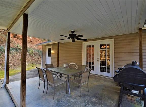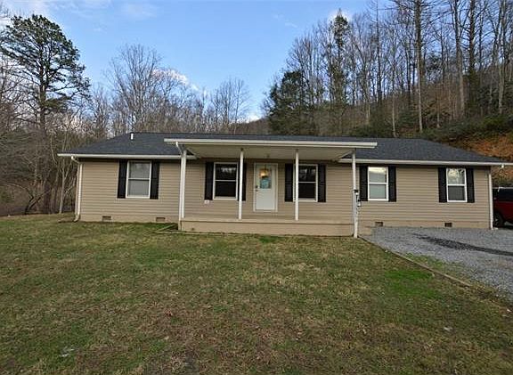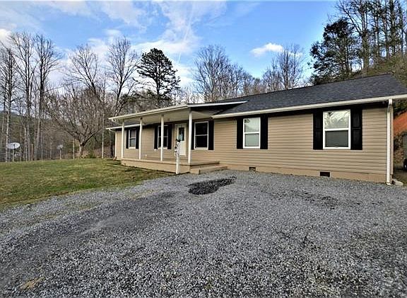 This beautiful sprawling ranch features an open great room with plenty of space to entertain. The home has hardwood and tile flooring throughout. The kitchen provides lots of cabinetry and a large eating bar. There's a covered front porch as well as a covered back porch just of the dining area. The large patio beside the back porch extends the outdoor entertaining area. The laundry/mud room is very spacious with plenty of room for storage. This home offers 2 master bedrooms, 3 full bathrooms, and walk-in closets. The roof is approximately 4 years old and the heat pump was replaced 11/2011. Other updates over the years are vinyl siding and completion of the larger master suite. This home sits up on a hill overlooking the neighboring property. Close to Pisgah National Forest and Wilson Creek.