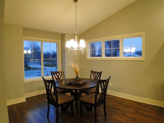 COMPLETED NEW CONSTRUCTION! The spacious, open floor plan features the kitchen with the center island, beautiful cabinetry and tile backsplash. An appliance allowance is included. The kitchen and dining area features wood laminate flooring. The living room has a cathedral ceiling, sliders to the patio, and plenty of windows to allow for natural light. The spacious master bedroom has a walk-through to the bathroom which includes two sinks and a tub/shower. The second bedroom is also good sized. The laundry room completes the main floor. The daylight lower level includes a large family room, two addtional bedrooms and a full bath The home is being built by Maier Homes - quality construction throughout. Come take a look! We can custom build your home also.
