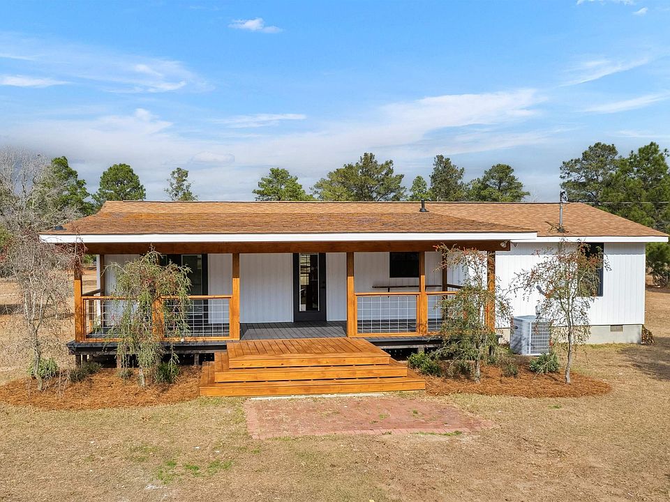 Experience peaceful country living in this beautifully updated single-story home situated on over 5 acres. This inviting 3 bedroom, 2 bath property blends charm, comfort, and modern upgrades throughout. Step inside to a spacious living room featuring a cozy fireplace and an open flow to the dining area—ideal for gatherings and everyday living. The remodeled kitchen offers new cabinets, quartz countertops, tile backsplash, and stainless steel appliances, creating a stylish and functional space for cooking and entertaining. The owner's suite includes a walk-in closet and an updated private bath with a beautiful tile surround. Two secondary bedrooms share an updated hall bath featuring new fixtures and cabinetry, providing a fresh, modern look. Relax outdoors on the covered front and back porches, perfect for soaking in the peaceful views of your private acreage. With room to roam, thoughtful updates, and a serene setting, this country retreat is ready to welcome its next owner.