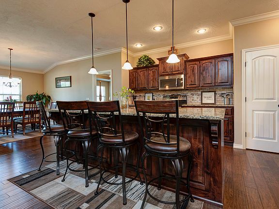 All brick 5 bedroom, 3 full bath, plus office home in McBride/Kickapoo schools. Very nice open floor plan with split bedrooms. Main floor features: large open living room, kitchen with granite counter tops, tile backsplash, custom alder cabinets, stainless steel appliances and large pantry. The master ensuite has tray ceiling, double vanities, large walk-in shower and huge closet. Two more bedrooms, full bath and nice laundry room on the main floor. The basement features: large living room, game area, stone gas log fireplace, large wet bar with mini fridge, 2 more bedrooms, office, storm shelter and lots of storage. Outside you will find a covered front porch, covered back deck, covered patio and privacy fenced backyard. Bussell Built home with high efficiency HVAC, windows and upgraded insulation.