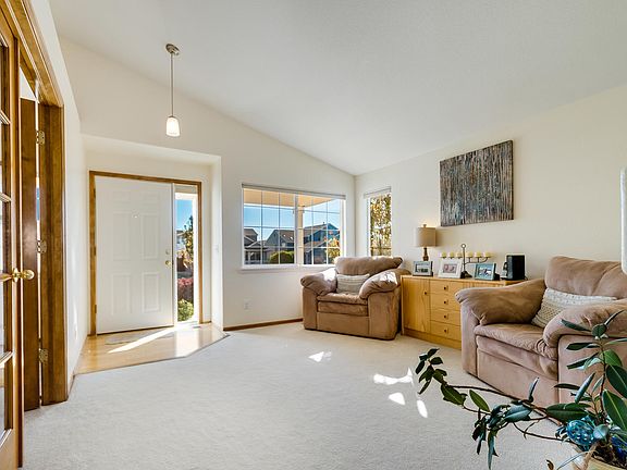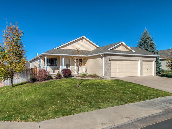Come home to a bright open 3 bed/2 bath Ranch AND 3 car attached garage! Vaulted Ceilings and Tons of Natural Light with Spacious kitchen -newer appliances/pantry & large island that opens to dining and family room with fireplace. Updated lighting/wood flooring in entry and kitchen/family/dining areas. 3rd bedroom is an ideal office space with French doors. Master suite has vaulted ceiling, lighted ceiling fan, large bath area w/ dual vanities and sinks. Main Level living throughout w/laundry on main. The peaceful back deck and yard are perfect for entertaining and relaxing-- breath taking mountain views and sunsets! South facing drive makes winter snows easy to manage. Corner lot offers privacy. The 800+ sq. feet in unfinished basement is great for storage/hobbies or finish for extra living space w/ egress windows provide nice natural light. Meticulously maintained home is ready for you to move in or update to your taste. Showings start Sunday Nov 6 @10 am