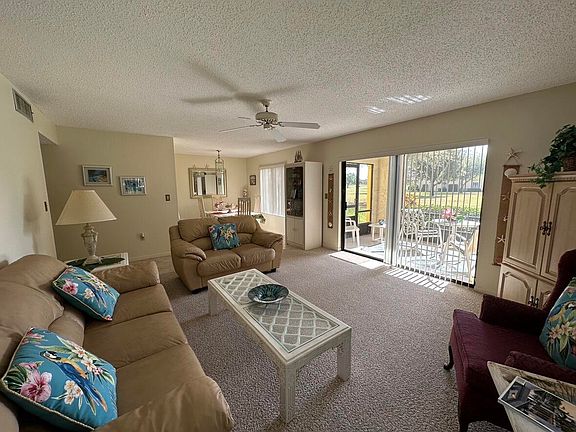 Lovely first floor corner unit, furnished 2-bedroom condo with golf course view, located directly across from tennis courts. Social membership in Miles Grant CC is required at low cost of $1,890 per year +$350 min. food purchase at the club annually (includes 9 full rounds golf annually). Active 55+ community with 18 hole golf course, large putting green, practice area for your short game, sand trap practice, pickle ball & tennis courts, shuffleboard, corn hole, bocce and multiple swimming pools. There is Kayak storage, fishing or paddle boarding too! Club house has a Tavern, and a fantastic calendar of activities. Sunday's Buffet Brunch is legendary! Full golf memberships are available. No lease 1st yr. No trucks/RV/motorcycles. No pets permitted in Phase Two.