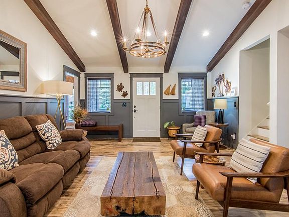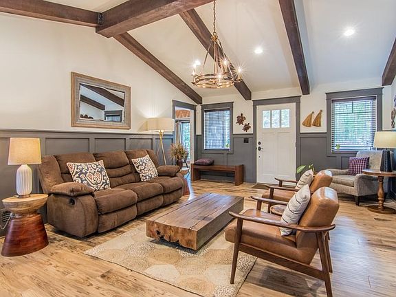 Immaculate home in Forest Glen! Featured on Fox Network "Home Free", this sleek renovation features wonderful details throughout, including exposed beams, beautiful molding, and recessed lighting. Flowing floorplan boasts inviting living room w/vaulted ceiling & cozy fireplace, separate dining, eat in kitchen with stainless steel appliances, farmhouse sink, great cabinetry. Spacious bedrooms & baths. Large recreation/den with built in bar area/wine cellar. Beautifully manicured lot, level fenced backyard with patio, fire pit, wired office with AC & 2 storage buildings.