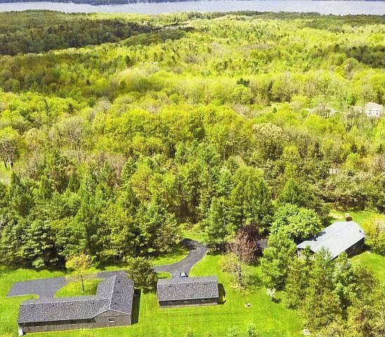 ARTISTS, ENTREPENEURS, CRAFTSMEN - 2012 sq ft workshop (heated, industrial electric) + well maintained post and beam home + 4 car garage + 8.5 wooded acres (more acreage available) QUIET, SAFETY, BEAUTY PEACEFUL Make this dramatic, well maintained post and beam country home your own private country estate! This beautiful home is surrounded by mature trees and breath taking views . Deer, turkey, fox, birds of all types can be seen from the windows in every room. This home is a true nature lover's dream! Even though this home is in a quiet, rural area you are only 35 minutes from Rochester, New York - a city that is home to many outstanding cultural events, excellent research hospitals, well known colleges, an international airport, etc. Doctors' offices, dentists, a grocery store, post office, library, schools, churches are only 10 minutes away. You are only 20 minutes away from Canandaigua, New York - home to Wegman's, the Wine and Culinary Center, Thompson Hospital, etc. You are in a lovely part of New York State - minutes from wonderful hiking , canoeing, fishing, nature watching and wine tasting. We have tried to capture the special essence of this home and property with our pictures. But, to really appreciate this home's unique character you must come on site to appreciate its aura - It must be seen (we know that is a cliche, but in this case it is true). The 1600 sq ft main level has a 500 sq ft great room , two bathrooms, kitchen, den, two bedrooms,. All rooms have vaulted ceilings with exposed beams and many large windows. The great room has 11 foot high ceilings and windows that extend from ceiling to floor with views of Honeoye Lake and the Rochester skyline. The kitchen has a row of windows that look out onto the wooded landscape. Corian counters, breakfast bar, a new stainless steel refrigerator highlight the kitchen area. One of the three bedrooms has a loft area that allows for more space in that room. A cozy den with a hand crafted, built in bookcase s