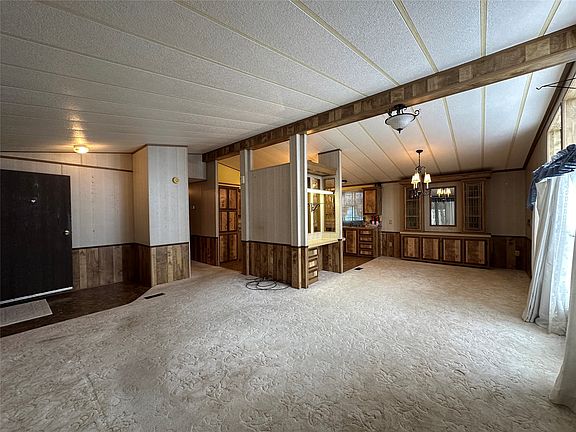 Welcome to this well-maintained 1986 double-wide home in Evergreen Court. Featuring 3 bedrooms, 2 bathrooms, and a spacious living area, the open living room flows into the dining area with built-ins and large windows that let in plenty of natural light. Additional highlights include a laundry room, a new A/C unit, a deck, an attached carport, and two storage sheds. A great place to call home! To schedule a showing, call Breena Buettner at 406-302-8257 or your real estate professional.