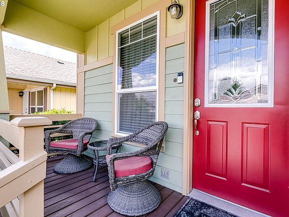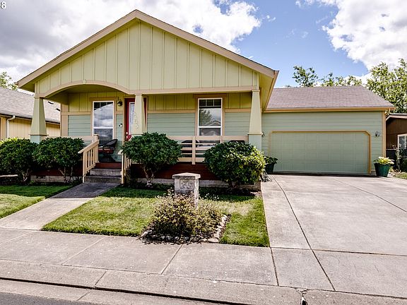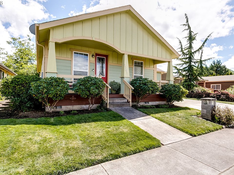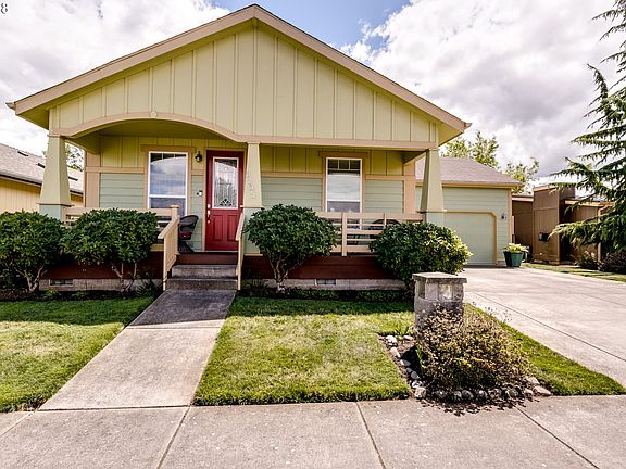 Former model home in Craftsman style on its own land in nice community of homes w/nearby park. Enjoy relaxing on the front porch, or entertaining in the backyard on the patio. Front & backyards have u.g. sprinklers. Garage & laundry room have built ins. Beautiful acacia wood flooring!