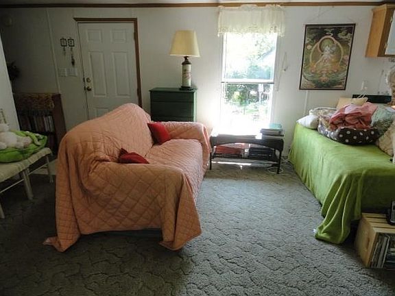 Secluded 10.3 acres with year round stream, trees, pastures, spring, vegetation including all organic gardens & fruit & nuts. Great wildlife viewing from the hilltops. Included is a 1120 sq. ft. airy manufactured home with 3 bedrooms, 2 bath & laundry room. Kitchen & living room is open floor plan, sturdily built on 2x6 studs with added window & door.