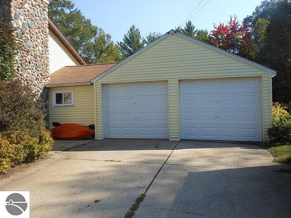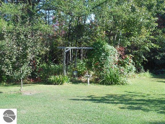 5 ACRES!! This 1100 square foot home has 2 bedrooms, one full bath, beautiful fieldstone fireplace with 2013 heatilator, newer carpet in 2013, newer roof and some updated electric. There is an attached garage, a shed and a Michigan basement for lots of additional storage space. The property is mostly wooded, with fantastic views and trails, and there is an abundance of nice landscaping and a deck for enjoying the outdoors. Conveniently located on paved road and just 8 miles from town for shopping and restaurants.