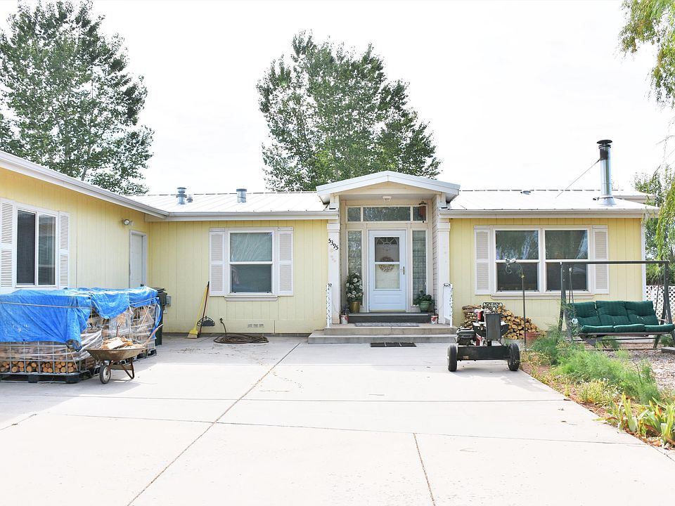 Gorgeous 2.5 acre property! Manufactured home with 4 bedroom & 3 bathrooms. Large open greenhouse attached to the back of the home with a wood burning stove, sliding glass doors and lots of light. Open floor plan throughout the home with a spacious master bedroom. Many outbuildings surrounding the home. One has electricity and is carpeted, others are perfect for animals. On the side of the home i