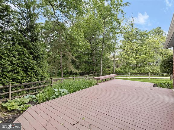 Welcome to this serene retreat tucked away on a quiet cul-de-sac, offering tranquility and convenience in one. Backing to woods and hiking trails, this home provides the perfect backdrop for nature enthusiasts and outdoor lovers. Inside, an open floor plan awaits, featuring spacious living and dining areas adorned with wide-plank flooring and accent molding, creating a warm and inviting atmosphere. The chef's kitchen is a culinary delight, boasting an oversized cooking island with a breakfast bar, maple cabinetry, and sleek black quartz countertops. The living area seamlessly flows onto the expansive Trex deck, offering a seamless indoor-outdoor living experience. Hardwood flooring graces all three bedrooms, while the updated dual-entry bathroom showcases a marble vanity top for added elegance. French doors open to reveal the primary bedroom suite, complete with a walk-in closet featuring custom storage solutions, ensuring both style and functionality. The lower level family room is perfect for cozy evenings by the wood-burning stove, offering a full bathroom and a large storage room with a workshop and side entrance to the yard. Outside, the fenced backyard is a private oasis, featuring a bilevel Trex deck with built-in seating, ideal for entertaining or simply relaxing in the peaceful surroundings. With its prime location backing to woods and hiking trails, this home offers the perfect blend of comfort and convenience for modern living.