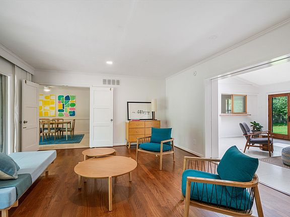 This is the meticulously maintained mid-century modern home you've been waiting for! Enjoy the vaulted great room with terrazzo floors, skylights, fireplace, and bar or gather in the living room with hardwood floors and tall windows. The large kitchen with white cabinetry enhanced by a new Miele cooktop and oven has room for everyone. Guest quarters with full bath and kitchenette. Relax in the sauna or hot tub knowing the roof, electrical panel, and water heater have all been recently replaced.