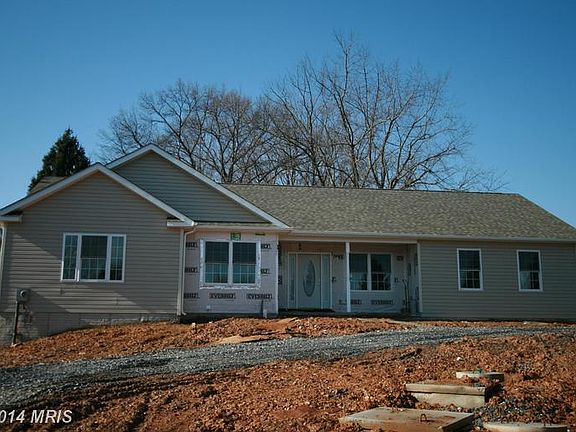 Settle in 45 days!! USDA financing ! Elegant rancher in mature neighborhood located 1 mile outside of Frederick City limits, close to Rt 70. Offers front porch,over size side load garage, cathedral ceilings ,hardwood floors on main lvl,tile in baths,granite counters, 42" maple cabinets, S/S appliances, gas fireplace, architectural shingles, fin. w/ out basement, media room, well is 50 gpm .