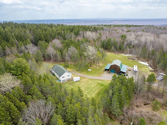 A piece of heaven called "The Highlands" can be yours! This beautifully kept 3 bedroom 2 bath ranch home on 10 amazing acres of woods. This beautiful home has a partially open floor plan w/ dining area, upgraded appliances & great fresh drinking water. Large living room. Master bedroom w/ on-suite. 1st floor laundry. The cozy comfy basement is heated w/ a coal stove. Ready to be finished your way. The basement is partially finished w/ bonus room great for work out equipment, crafting, music ect. New water softening system w/ UV light in 2022. Outside you can enjoy the wildlife from your open deck and hot tub! Large two story garage/ barn w/ 2 lean-to additions. Garage has an 9x10 ft overhead door. It is heated, concrete floor, 100 amp. electric service and 220 line, water, workshop area & storage. A highly sought after area of The Finger Lakes. Come enjoy the quite serene beauty of the tall pines and explore the beauty all around you. Great for anyone & everyone. Enjoy hunting on your own land or if you prefer the 1900 acres in the Italy Hill State Forest just minutes away. Don't enter property without an appointment. Delayed negotiations. Offers will be reviewed on 4/8 @ 7pm.