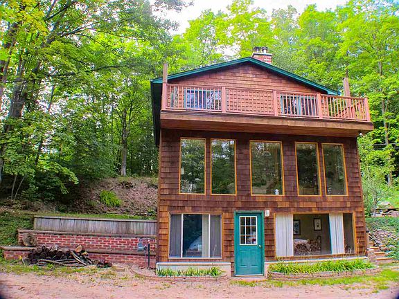 Authentic Northern Michigan charm and character can be found at every turn of this home. Enjoy the rich, warm feel afforded within the 1700+ square feet of living space. Stunning hardwood floors can be found throughout the majority of the home, while a second floor balcony invites you to quiet evenings outdoors. The detached garage and bonus shed provide ample storage, while over two acres of hardwoods hides the fact you are just minutes from town. There's no other home on the market quite like this gem!