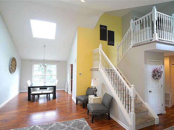 Welcome home to this 3/4 bedroom home in desirable East Penn. This beautifully designed property offers open living spaces and vaulted ceilings, providing a spacious feel perfect for entertaining. Modern kitchen is complete with granite countertops, a convenient eating area, equipped with a wine cooler and bar, an adjoining family room w/gas fireplace, ideal for relaxing evenings. Step outside to enjoy the serene two-tier wood deck, overlooking open, tree-lined yard (no houses behind you) perfect for outdoor dining and relaxation. Laundry/mudroom with outside access, and powder room complete first floor. Upstairs offers master suite featuring walk-in closet, master bath with a custom tile standing shower and a private water closet. Two additional bedrooms, 2nd full bath, and a den/office that can serve as a fourth bedroom complete the upper level. The finished lower level walk-out provides additional living space with direct access to the lower deck and backyard. This space is ideal for Recreation Room, Game Room, Theater Room. 2-car garage, NEW ROOF AND WATER HEATER (2022), replaced HVAC in 2017. Easy access to neighborhood walking path, creek, and playground and convenient location to local amenities!