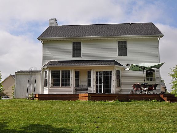 Lovely 3Bed, 3Bath home. Enjoy the beautiful view overlooking the park from a large deck, walking paths, and a well groomed lawn. Kitchen is big, lovely windows, tile floors & island. Wood burning fireplace in the living room. Matching shed to store wood as well as set up shop. All the baths have tile including the full bath on the main level! Samsung high-efficiency washer and dryer included with home. Bedrooms are roomy w/great closets. Lots of large windows & light! All three bedrooms are on the second level. From the attractive brick front to the lovely perrenials leading to the picturesque back deck - this home is a great home at a great price, in a great neighborhood!