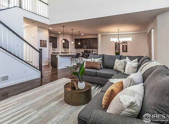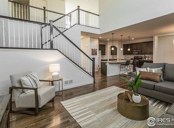 Better than new & highly upgraded home in desirable Timnath Ranch subdivision! Less than 1 year old w/full landscaping completed! 4 CAR garage, spacious, open floorplan w/2 story vaulted ceilings in great room, hardwood flooring on main level & stairs, 4 BD & office/formal dining Room, full unfin. bsmt w/ 9' ceiling, & covered back patio backing to open space. Upgraded kitchen w/black SS appl, butler's pantry & high end granite counters. Full list of upgrades in Document tab. Check out video!