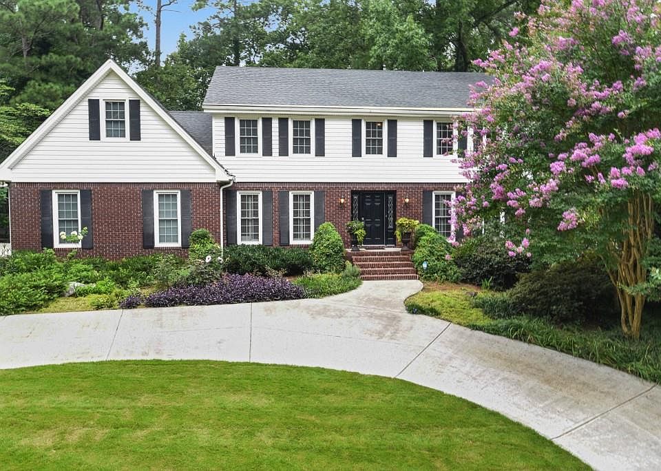 Warm and inviting home in desirable Dunwoody location in Kingsley subdivision. Wonderful location close to shopping, restaurants, highways, schools & places of worship. Inviting kitchen with Banquette seating allowing for cozy dinners. Formal Dining Room with exquisite crystal chandelier that stays with the home. Off kitchen is enclosed porch overlooking fenced in yard and side entry garage. On main floor is Family Room with fireplace. Adjacent is 4th bedroom with French Doors that could also be used as a home office. Upstairs are two bedrooms with upgraded full bath, then owner's suite with bathroom. Behind owners bedroom is a finished area that could be used for home office, home gym, home theater -possibilities are endless. Home has many upgrades including circular driveway, retaining wall, flooring, owner's bathroom and guest bathroom, insulated windows, enclosed back porch newer roof and water heater Won's Last Long