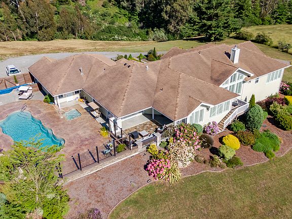 YOUR ULTIMATE *STAY-CA-TION* EXPERIENCE AWAITS! Discover RELAXATION, LUXURY & HARMONY at the end of the lane of this PRIVATE 7 ACRE ESTATE. Conveniently located only 5 minutes from town, this property is zoned Ag and can be subdivided if desired. With nearly every room boasting floor to ceiling windows offering tranquil pasture, mountain and peek-a-boo ocean views...Soon your heart will be calling this HOME. Right off the recently remodeled Modern Kitchen relax on your semi-glassed in patio and watch your cares melt away in the SUNSET! ''POOL PARTY''! An Entertainer's Dream with MULTIPLE DECKS, HEATED SALT WATER POOL AND 8 PERSON IN GROUND SPA guarantees ROOM FOR EVERYONE! You're ''ON TOP OF THE WORLD'' with breath taking views from the upper pool deck or your own living room couch.