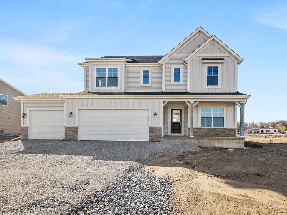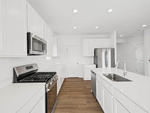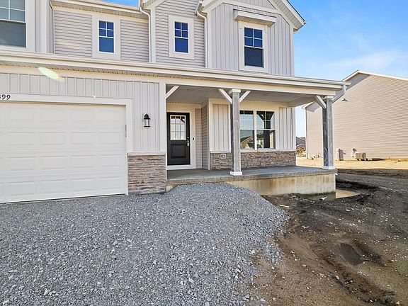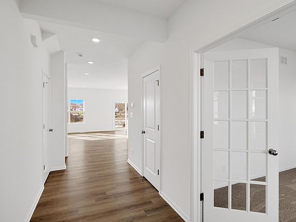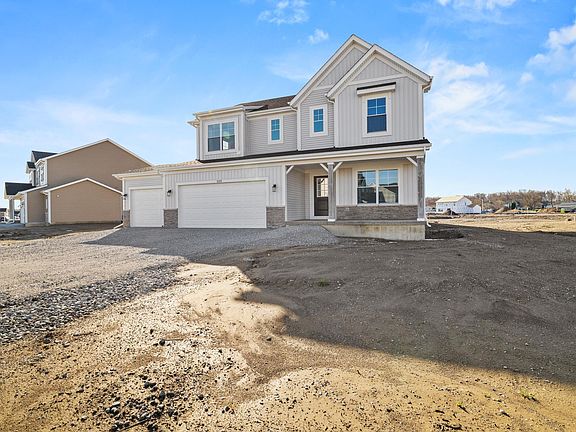 The Rowan! An open concept floor plan with 9' ceilings on the main floor. It has 4 spacious second floor bedrooms, loft and a main floor flex room with French doors that could be used as a den/office or dining. Plus, a main floor guest bedroom and bath. The Kitchen showcases white cabinets with quartz countertops, stainless steel appliances, island for entertaining and walk in pantry. The Owner's Suite has a beautiful tile shower, double bowl vanity and large walk in closet. Spacious second floor loft area. Full basement with roughed in plumbing. Front yard landscape. Patio. 3 car garage.
