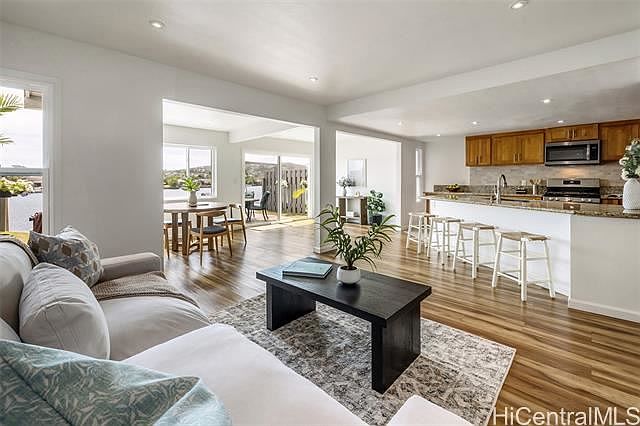 This exceptional 4 bedroom 3.5 bath lakefront unit is located in the popular lakefront community of Kukilakila. Attached 2 car garage - you can enter your home through your private courtyard or through the downstairs bedroom. Some of the many features include added square footage and a reconfigured floor-plan which is all permitted. The first floor has a bedroom and bath ensuite. This unit has many outstanding features which includes an open and remodeled kitchen with new appliances, cabinets, counters etc., upgraded electrical and plumbing throughout, extra large and remodeled bathrooms, new flooring throughout and much more. See complete list of features and upgrades in MLS under the Supplements. Kukilakila is a PUD (Planned Urban Development) - each unit owns the land it is situated on. Amenities include a heated pool, clubhouse, park-like grounds, ample guest parking and lakefront walking paths.Convenient location close to shopping, schools and Kailua Beach.