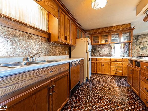 Your new home is Located in a lovely, established neighbourhood on the west side of Owen Sound, close to Harrison Park, downtown, shops, restaurants, schools and more. The unique, custom built, 4 bed, 2.5 bath home that boasts an inviting floor plan and is stylishly designed for those who love to entertain. There is lots of parking, a built in outdoor cooking area and patio/grounds that has, in the past, accommodated over 100 people celebrating Christmas and elaborate wedding parties. The large, private treed lot is nestled in beside the Escarpment, and surrounded by mature trees on a quiet no-through street. The main level provides a unique layout and features a grand fieldstone fireplace, wet bar and eat in kitchen bar with two large glass slider patio doors that open up to your patio and outside cooking/entertaining area. The second level features an oversized and bright primary bedroom, with walk-in closet and walkout to private balcony. Three additional bedrooms and two full baths complete the upper level. The backyard features an oversized storage shed for your equipment and extra items you don't want taking up space in your 2 car garage. This is a great opportunity for those looking to personalize their lifestyle by doing renovations or updates to this beauty. Admittedly, the home is somewhat dated but it's clearly an artistic persons palette to add their own personal touches making this home a place you'll never want to leave! 2023-02-24