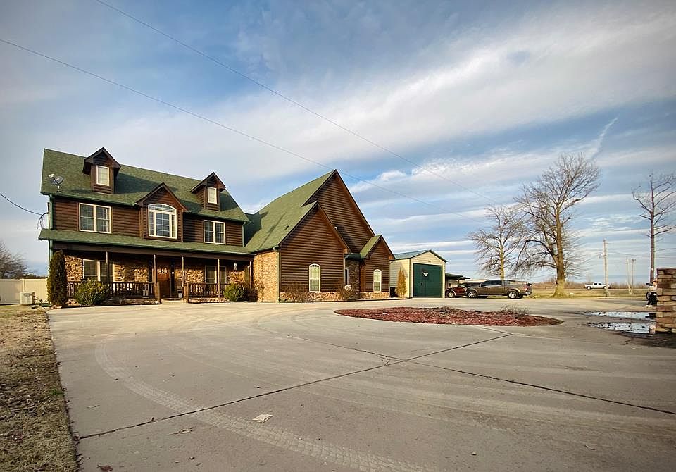 What a fantastic home situated on over 2 acres of land. It is truly customized all around. Granite countertops in the kitchen along with a wet bar and stainless steel appliances. The greatroom boast a beautiful wood-burning fireplace that is wrapped in Arkansas field stone along with beautiful wood flooring throughout the entire home. The primary bedroom is absolutely massive as well as the primary bathroom that features a large walk-in tiled shower and custom standalone cedar bathtub perfect for relaxing after a long day at work. The second bedroom downstairs is also quite large and has its own bathroom and perfect for any guest. There are 2 bedrooms upstairs that are massive as well, along with an open loft area that would be perfect for a playroom or movie area. There is also a third floor that could be finished out for an additional sleeping. This sale also includes a 3 bed 1 bath in law house next door with a 15x30 above ground pool. Talk about energy savings, the home also come equipped with Geothermal heat and air. There is a large metal shop next to the main house that is ideal for RV storage and also a new 40x60 shop with electricity that was added in 2022. There is also a dog kennel that is heated and cooled and also has water ran to it. If in the country, with plenty of space, and all the amenities is what you are looking for, then look no further. Call today to schedule a personal tour of this home. You will not be disappointed.