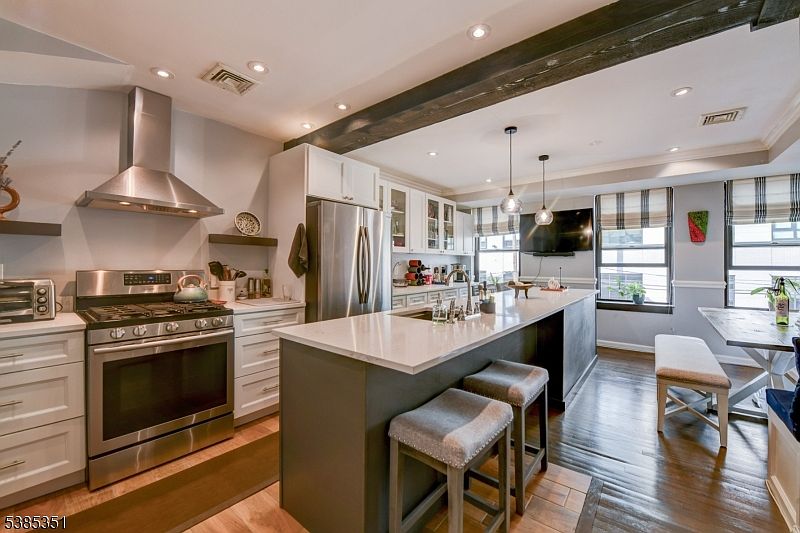 Location, Location, Location, commuters dream and perfect for those looking to be in the heart of the Ironbound, approximately 2 blocks to Newark Penn station and Ferry st., near Prudential Center. Beautiful Three level apartment with three bedrooms absolutely gorgeous modern eat in kitchen with island and custom built banquette, in unit laundry. One of the few units that has view to court yard. courtyard is a beautiful area where residents can BBQ, entertain or just hang out and relax. There is indoor parking. Convenient to local shopping, restaurants, entertainment, major highways, Newark airport and much more...This home is in excellent condition, wonderful opportunity nothing like it in the area.
