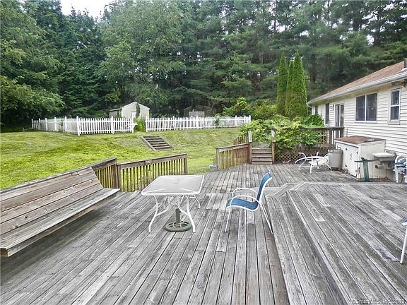 Sprawling ranch beautifully situated at end of cul-de-sac with loads of lush yard and inground pool! Great entertaining home with large deck off back and spacious interior. Enter into a roomy foyer off of which are a formal living room (with mural) and closet to your left, and walk straight into large kitchen with dining area and sliders to deck. To the left of the kitchen is the huge family room with fireplace, giving way to game room overlooking back yard, deck and pool area. Two-car garage is also off of family room. To the right of the kitchen is a long hall with closets, laundry, four bedrooms and two full baths. The master bedroom at the end of hall has large full bath with shower stall and tub, and sliders to deck. This home has many other great features including central air, full basement, vinyl siding, CITY SEWER, outdoor shower and pool house/shed. Listing price is below town appraised value. Home is being sold AS IS but with some TLC, this is the deal of the century!
