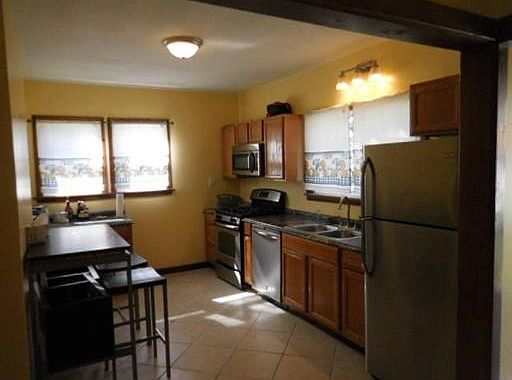 Spacious, fully remodeled SEVEN rooms FOUR bedrooms home offers hardwood floors through out, walk in closet in all bedrooms huge living room, with natural wood work, and ceiling fans. Dining room with fireplace. The kitchen has ceramic tiles, oak kitchen cabinets, and stainless steal appliances. Partially finished basement, fenced in yard, and much much more. Easy to show.