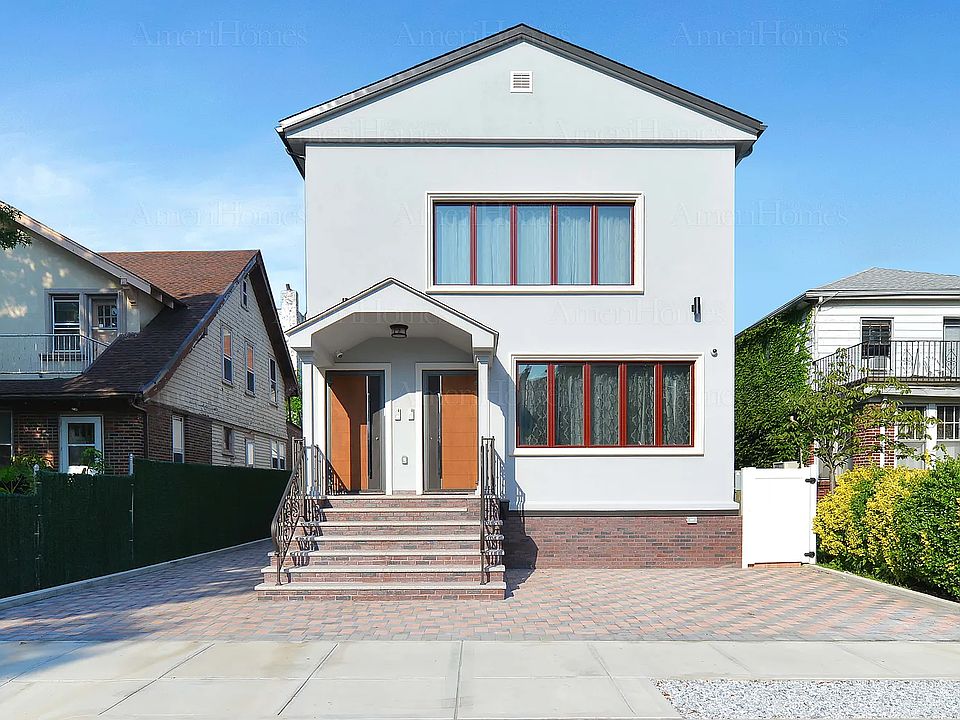 This is an exclusive listing of Victor Li at AmeriHomes Realty 718.891.2626. This stunning, gut-renovated two-family detached home ticks every box with gorgeous designer interiors, innovative home features, and great outdoor space. A handsome stucco façade blends perfectly with the tree-lined block's million-dollar homes while adding magnificent curb appeal to this gorgeous Manhattan Beach home. Featuring a three-bedroom, three-bathroom owner's reversed duplex and a three-bedroom, two-bathroom second-level apartment, this extraordinary residence is an ideal opportunity for homebuyers seeking multigenerational living space or an income-producing rental. A classic high-stoop entry invites you into the main level of the owner's duplex to discover beautiful imported porcelain and hardwood floors by Mirage, oversized windows facing east and west, and tall ceilings dotted with recessed lighting. Enjoy a generous footprint for living and dining areas while outside; a gorgeous yard welcomes alfresco dining and entertaining. At the heart of this level, the designer kitchen dazzles with large-format stone tile, a massive Quartz island, custom cabinetry, and a fleet of stainless steel appliances, including a Blomberg refrigerator, Bertazzoni gas range, Miele dishwasher, and built-in microwave. A perfectly placed spacious owner's en-suite and two more large bedrooms with a second full bathroom complete this level. Head upstairs to the second-floor apartment, where a three-bedroom layout presents abundant opportunity to accommodate a home office along with your primary bedrooms. The large living room receives lovely natural light and tree-lined streetscape views through the large double-paned windows. The open-concept kitchen is outfitted with stainless steel appliances, a dishwasher, and an abundance of storage. The rear-facing king-size bedroom has a bathroom that features a walk-in shower, new tiling, and fixtures throughout. A second bathroom completes this level. The well-appointed lower-level impresses with a private entry, flexible rooms layout, and a bath with a walk-in shower and steam room. Additionally, this level features a laundry room, fitness room, multiple closets, and a mechanical room. See for yourself all this fantastic home has to offer; abundant bright space, high ceilings, luxury finishes, European doors, Pelé tilt and turn windows, and a high-efficiency tankless water heater. Every imaginable detail has been considered in the renovation, including brand new individually zoned mechanical systems along with radiant floors in all bathrooms and a fully integrated AV system with ceiling speakers and connectivity for TV, Internet, and Security. Seamless, year-round comfort is ensured by a multi-zone heating/cooling system offering climate control in each room. The house has been fully insulated to save money and energy. As if this wasn't enough, the front of the house is complemented with a paver stone driveway, big enough to accommodate three midsize vehicles. The backyard is a blank slate to begin your new outdoor space. (Please note that images contain virtual staging)