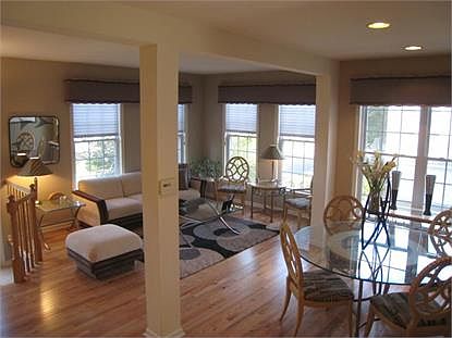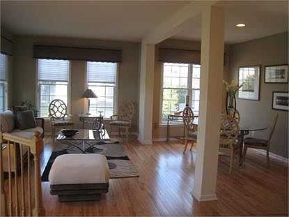 Priced to sell quickly!!!! Immaculate renovated 3 bedroom end unit townhome. Brand new hardwood floors! Upon entering this meticulous home you will notice the neutral decor, open floor plan, functional and aesthetically pleasing. Brightly sunlit kitchen with granite countertops overlooks the family room with marble gas fireplace. Relax and unwind by the private wooded deck or proceed to the lower level den; recently renovated with custom built--ins; fantastic for extra storage. master bedroom has large walk-in closet and a gorgeous private bath. Numerous improvements and updates. Hunter Douglas Silhouette blinds included.