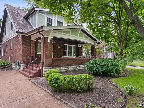 Home sold with multiple offers. Some storm damage addressed via insurance claim. In the heart of Clayton, this beautifully restored bungalow home blends timeless charm with smart updates - just minutes from Forest Park, great shops and restaurants, Washington University, and 3 of the best elementary schools in the state. The spacious front porch invites you into a warm, light-filled interior featuring original millwork, gleaming hardwoods, exceptional period stained glass windows, and built-ins that celebrate the home's Arts & Crafts heritage. The living room, anchored by a handsome fireplace, flows easily into the dining room and an updated, sunlit kitchen with custom cabinetry, luxe stone counters, a walk-in pantry, and designer appliances. A cozy den and powder room round out the main floor. Upstairs offers three bedrooms, a bonus sunroom/office, and a newly renovated bath with a large shower and separate soaking tub. A partially finished lower level offers an option for a guest space/4th bedroom or play room and with a stylish second full bath. The lovely backyard, two-car garage, plus direct access and great views over Concordia Park make this home as functional as it is beautiful. This home is a true Clayton classic - come see for yourself why the sense of community in this neighborhood is second to none anywhere in STL!