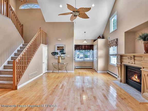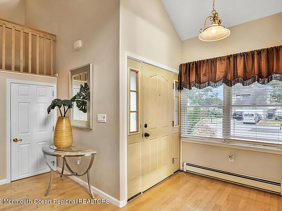 Located in the desirable Waterfront Community of Baywood is where you'll find this well maintained Contemporary styled Home. Quality construction is evident throughout and includes; ''Timberline'' Roof, '' Dryvit'' Exterior Insulation and Finish System, ''Andersen'' windows and French Door, ''Truss Joist I'' floor joists, ''Weil McLain'' Boiler for baseboard heat, ''A.O. Smith'' Water Heater & more. Impressive open floor plan features cathedral ceiling Living Room with skylights, trough accent lighting, maple flooring & gas fireplace with custom mantle and open stairway with balcony above. Dining area features French Door to the rear yard with an above ground pool . Spacious Kitchen features ceramic tiled floor, raised panel Maple cabinets with 42'' uppers & crown breakfast island, granite counters, tiled backsplash, stainless steel appliances featuring a "Kenmore" Elite refrigerator, "Samsung" 5 burner gas-range, "Whirlpool" microwave hood & "KitchenAid" dishwasher. Master Suite located on the first floor features laminate floor, full private bath with ceramic tiled floor & "Kohler" whirlpool tub surround, stall shower & entrance to the walk-in-closet. Half-Bath features ceramic tiled floor & cistom vanity. Laundry Room with "Samsung" washer & dryer & cabinetry leads to the oversized garage with workshop cabinets & storage above completes the first floor. Second floor features three nice sized Bedrooms and a full Bath with ceramic tiled floor, custom vanity & fiberglass tub/shower unit. Close proximity to Shopping, Brick's Oceanfront Beaches and only a short walk to the Township's Angela Hibbard Public Park. Please schedule a viewing of this beautiful Home soon and I promise you won't be disappointed!