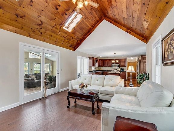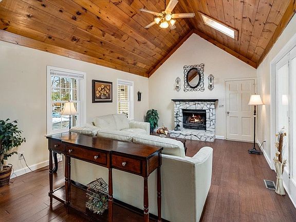 Open house 3/29 CANCELLED. Nestled in a quiet, established neighborhood, this charming Cape-style home sits back from the road, offering both privacy and tranquility. With wonderful curb appeal, it features a welcoming farmer’s porch and a picturesque front gazebo—perfect for relaxing and watching the world go by. Designed for comfort and entertaining, the home boasts a seamless flow between the kitchen, living, and dining areas. Enjoy mornings at the breakfast island or host gatherings in the formal living room with a cozy fireplace. A bright, heated sunroom with a pellet stove, skylights, and abundant natural light adds to the inviting atmosphere. Upon entry, you're welcomed by the formal dining room, with an adjacent flex room—ideal for a game room or home office. Upstairs, you'll find 3 bedrooms, with potential for a 4th, including a spacious primary suite with a walk-in closet and an en-suite bathroom, already roughed in for your personal touch. The outdoor space is just as inviting, featuring a generous backyard, charming farmer’s porch, and a large open area with a small fenced section for pets and 3 garden beds. The above-ground pool will be removed before closing. Additionally, the home comes equipped with a power 1400kW Generac brand generator. Welcome home!