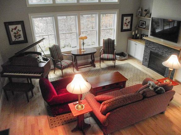 This luxurious and spacious End Unit Townhome is move-in ready now and shows like new. A gracious home to entertain family and guests with cathedral ceilings, open floor plan, extraordinary wall of windows and gas fireplace. First floor boasts 9' ceilings, hardwood floors, fabulous finishes and a 4-season porch for extra living space. Master suite also on 1st floor features tiled shower, dual sinks, granite counter tops. Two more spacious bedrooms upstairs and grand media/family room. Attached 2 car garage, 7 acres of common acreage abutting nature trails that connect to Williston Village. Low monthly fee of $185 includes landscaping, plowing, trash removal and more. Convenient location with proximity to Maple Tree Plaza and I-89.