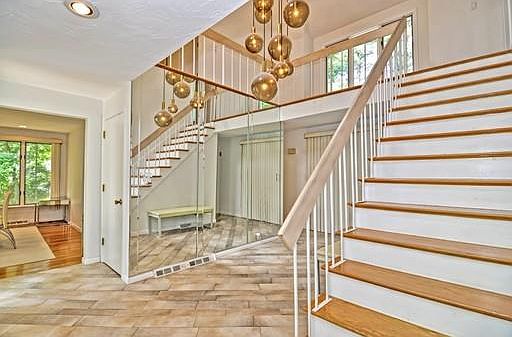 Bright and Sunny 3 bedroom Contemporary with plenty of room for the entire family. Enter into the beautiful foyer with soaring ceilings. Enjoy the formal living room and family room, separated by the elegant double fireplace. Updated kitchen (2006) with corian counters and island lead you to the spacious dining room. Second floor features 3 good size bedrooms a loft, perfect for guests or office space. Other features include a full bath and the Master Suite, complete with fireplace, large walk in closet and master bath with Jacuzzi tub. Enjoy the beautiful (heated) Sun Room and deck overlooking lush back yard.
