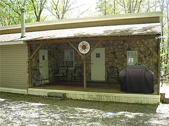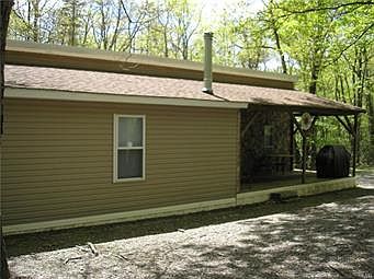 If you are looking for an affordable Mountain retreat, look no further! This cozy 2 bedroom bungalow is situated on a one acre wooded lot in a very quiet and peaceful setting. Newer vinyl siding, insulated windows and large covered front porch. The interior is updated and modern and has a wood stove for cool nights. Great opportunity for hunters, fishermen, and skiers. The Kids will love the tree house in the back yard and there is also a large storage shed. The Seller has contracted for a new rear roof to be installed shortly. No FHA or VA financing.