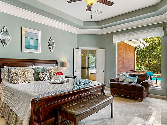 Paradise awaits in this distinctive home w/tropical oasis on a cul-de-sac in perfect location! Home has great layout w/guest quarters above attached garage. New exterior paint, roof and carpet. Grand foyer entry to living, formal dining, study. Granite in all wet areas, gourmet kitchen w/huge island for entertaining, SS appliances. Crown molding, plantation shutters, tons of storage! Huge master shower. Pool w/beach entry, waterfalls, diving area, spa, fire pit, tropical landscaping.