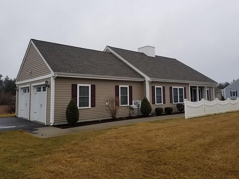 Welcome to Premier Berry Hill Estates 55+ adult gated community. Situated on a corner lot this fabulous model ranch style home with ton of upgrades including oversized kitchen w/ Island/granite/hardwood with sitting and dining area open that is open to fireplaced living room with crown molding. 4 season sunroom w/sliders to private patio. Master bedroom with walk-in closet and master bath with double sink & granite. Guest bedroom and an additional den/office. Amenities include in-ground pool, clubhouse w/kitchen, exercise room, game room, community/lounging area. Condo fee includes Landscaping, plowing, trash, clubhouse, & pool. Please submit highest and best offer by Thursday, Feb. 22 by 5:00pm.