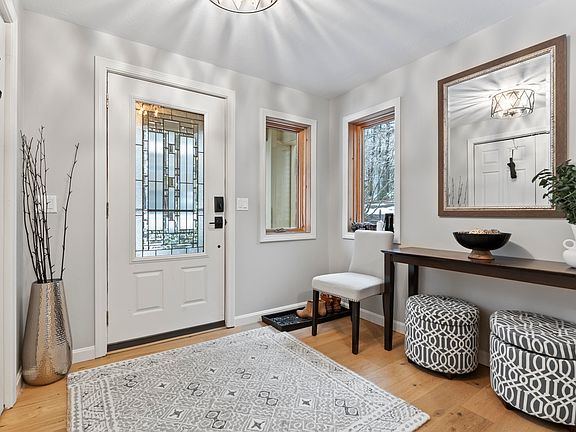 With a beautifully landscaped, 3.44 acre, park-like lot, this wonderfully updated 3-4 bedroom, 2.5 bath contemporary home gives you the peace of living with nature while enjoying all the amenities and convenience of living in-town. The kitchen was recently updated with freshly finished cabinets, new appliances - refrigerator, microwave, and dishwasher. A large deck is conveniently located off of the kitchen. A wood stove is located in the living room, offering a sense of coziness all winter long. The second floor boasts a primary bedroom suite with an expansive walk-in closet with custom built-ins, bathroom/laundry room, and sunroom, which have all been recently updated. This home includes an attached 1-car garage and a detached 3-car garage. There is approximately 600 sqft of heated space above the garage. Make it your workshop, game room, or in-law suite - the possibilities are endless!