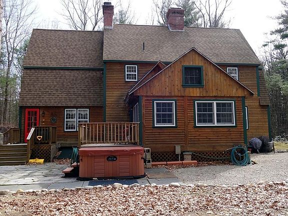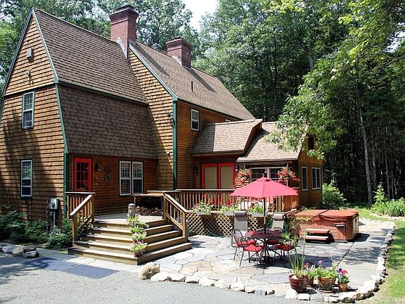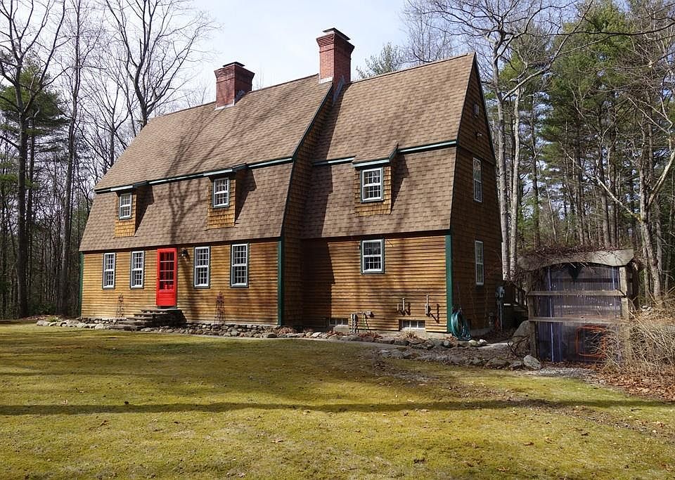 Welcome to this custom built, contemporary Colonial located on 9.76 acres, yet only minutes to Amherst center! This meticulously maintained, renovated post and beam home offers an updated, inviting kitchen with double wall ovens, cooktop & breakfast bar that creates the heart of the home! The open floor plan living and dining room, complete with Rumford fireplaces, wood stove, wood floors & sun filled space. The large first floor bedroom has many possible uses, guest room, family room or study. The Master bedroom with fireplace also enjoys additional sitting room/office with custom built closets. Two bedrooms and laundry complete the second floor. The insulated and improved attic is ideal for storage. The exterior features include a lovely deck with Goshen stone patio, established gardens, sheds & abundant space to enjoy the peaceful, country setting complete with mediation labyrinth! This is a one of kind home, a must see!