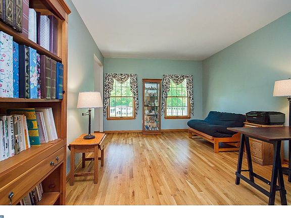 Nestled on just over an acre of land on Montgomery Meadows gently winding Brandywine Road, this meticulously maintained home looks out over a vast, green expanse which includes a beautiful tree line at the back of the property. A paver walkway and genteel porch create a fitting welcome for visitors, evoking thoughts of casual visits from friends and neighbors. Inside, youll feel immediately familiar with the traditional center hall colonial layout, with the formal dining and living rooms on either side of the generous foyer. While the foyer and kitchen have tile floors, the rest of the main level rooms have beautiful hardwood floors. The family room has a wood-burning fireplace with a raised hearth, flanked by windows. The family room opens to both the living room and kitchen, and accesses a small patio from sliding glass doors. Sliding glass doors from the kitchen open onto the back deck that connects to the patio to create an outdoor dining and entertaining area. Upstairs, the master suite features two walk-in closets and a roomy master bath with a cathedral ceiling, double vanity, tub and stall shower. Three additional bedrooms share a hall bath. Additional features include a side loading two-car garage, first-floor laundry room and unfinished basement. 54 Brandywine Road offers an enticing combination of a sizable lot backing to a wooded area, roomy interior and desirable location in the esteemed Montgomery Township School District.