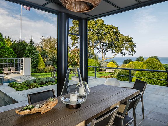 Rental Registration #: 25-229 Situated at the end of a private cul-de-sac, this sophisticated contemporary offers an unparalleled waterfront lifestyle, overlooking Gardiner's Bay with sweeping views of Gardiner's Island and Montauk. Set within the prestigious Broadview Resident's Association in the Bell Estate, this exceptional home provides exclusive access to scenic nature trails and a historic enclosed stairway leading directly to a pristine private beach. Designed for both refined living and effortless entertaining, the home boasts a state-of-the-art chef's kitchen, and four luxurious en-suite bedrooms, each offering tranquil, picturesque views. Expansive walls of glass blur the line between indoor and outdoor spaces, filling the home with natural light and showcasing the stunning park-like setting of sculpted, mature landscaping with breathtaking water views as the backdrop. The outdoor living experience is just as impressive, featuring a heated gunite pool and a fully equipped kitchen complete with a high-end grill, pizza oven, and refrigerator. Whether savoring a morning coffee on one of the many terraces, unwinding with a glass of wine poolside, or enjoying an osprey flying overhead, this modern sanctuary embodies the perfect balance of contemporary elegance and natural beauty. A true escape for those seeking serenity, exclusivity, and the finest waterfront living.Two Week Periods Available 7/1/25 - 8/19/25: Contact Agent for Details