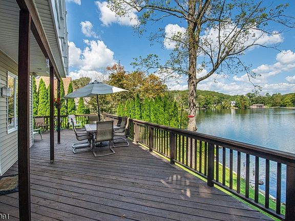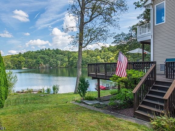 Embrace the tranquillity of this wonderful lakefront home,your own private retreat after a long day. With approx 77 ft of lake frontage to entertain or just sit and relax. This custom home with C/A & central vac was redesigned & rebuilt to perfection. Updated eat-in kitchen in 2012 with silestone countertops, glass backsplash & skylight. The kitchen leads into dining room and family room with stone woodburning fireplace, 9 ft ceilings, oak floors with mahogany inlet. A wall of windows leading to the wraparound deck overlooking the lake is breathtaking. Main floor laundry room/powder room for easy laundry. Stairway to an octagon hallway with oak & mahogany flooring and 3 generous sized bedrooms. The primary bedroom, large walk-in closet & sliders to a private veranda overlooking the lake. Primary bathroom with maple vanity, solid surface countertop & stall shower.The partially finished heated basement with bar (wet bar not hooked up) sliders out to a blue stone patio.Detached oversized 2 car garage w/ newer garage doors epoxy floor,propane heat,9 ft ceilings,separate electrical panel. A large storage shed with a loft, barn door & skylight.New septic to be installed prior to closing. Bring your non-motorized or electric troll motor boats and "sIs" aLW enjoy..Within 1 hour of NYC. Private mandatory lake association $450 year, use of lake, beach, activities & damn. Damn asssessment pending..Septic size has not been confirmed.& new will be determined by engineer. "AS IS" Sale