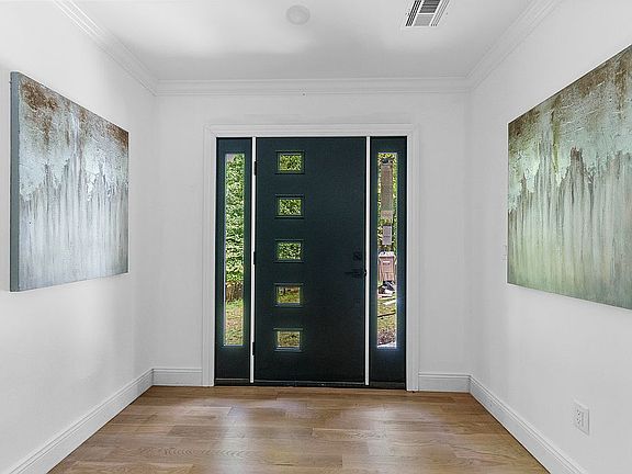 This newly constructed, modern, Chateau is nestled on a half-acre private oasis in the highly sought-after school district of Closter, NJ. With its beautiful white stucco exterior, this home is a testament to modern living, exquisite craftsmanship, and smart home technology. The property boasts 4 spacious bedrooms and 4 full bathrooms, including two master ensuites. Each ensuite offers a private sanctuary for relaxation, complete with walk-in closets, soaking tubs, and marble floors. Floors feature radiant heating, ensuring a warm and comfortable experience, even on the coldest mornings. The 10' ceilings throughout the home, coupled with custom oversized windows, create an airy, open atmosphere that is bathed in natural light. The entire home is adorned with white oak hardwood floors, adding a touch of warmth and elegance. At the heart of the home is a gourmet kitchen, equipped with a Viking range and oven, top-of-the-line appliances, and custom cabinetry, perfect for the home chef or entertaining. Situated on a quiet cul-de-sac, this home provides an added layer of privacy and tranquility surrounded by nature. Adding to the charm of this property is a serene creek that runs through the grounds, creating a peaceful and idyllic setting. The property also features a finished basement, providing additional living space or potential for a home gym, office, or entertainment area. A detached three-car garage offers ample storage and parking space. Located just minutes away from NYC and bordering Alpine, NJ, this home provides the convenience of city living with the benefits of a suburban setting. This home is perfect for expanding families, families with children, and professionals commuting to NYC. Don't miss this opportunity to own a slice of paradise in Closter. Updating interior photos as we near the completion of the Chateau. The home will be fenced in. Contact Tamayo 201.218.1635