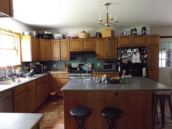 This is a great home for the growing family. Set well off the road on 3 green, private acres, wonderful floor plan featuring large kitchen,w/ HUGE island, dining room, fireplaced living room, family room & 1/2 bath w/ laundry on 1st floor, 3 bedrooms and 2 baths on 2nd with 3rd floor offering game room and guest quarters! This reproduction colonial homestead offers wide pine flooring throughout main living area, breezeway from large 2 car garage w/ 2nd floor workshop, central heat as well as fireplace insert, outdoor woodburning boiler, 2 oil tanks and solar panels, offering a variety of money saving features and options!!! A SERIOUS consideration these days, as fuel costs continue to climb. Workshop above garage was constructed to support heavy equipment - Very versatile space can be utilized in a variety of ways. Must be seen to be appreciated! Title V Compliant! Call for your own private viewing!