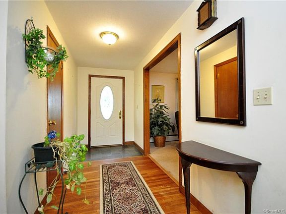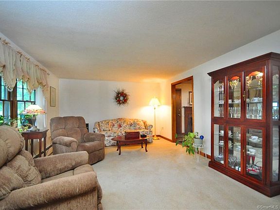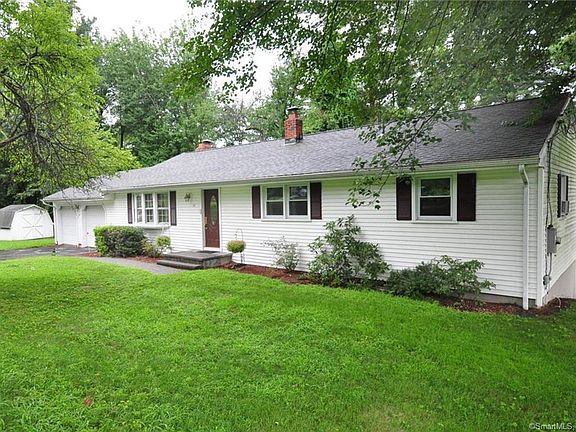 Pride of ownership shows in this Rambling Ranch. Be pleasantly surprised as you enter this well kept home, very spacious rooms , eatin kitchen, diningroom with fireplace, hardwood floors throughout, oversized family room with bar and gas fireplace. Enclosed porch to enjoy your quiet nights. Furnace, siding and windows are all less than 7 years old. All located on a cul-de-sac, conveniently located to everything you need. Easy on and off I-91. Clean, well maintained, adorable home ready for your move in.