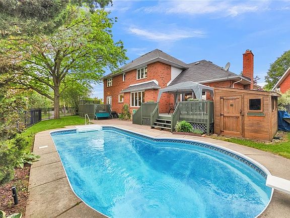 Welcome to 54 Burnt Ember Drive! This large, well-maintained four-bedroom home offers over 2800+ sq ft of finished living space, including a finished basement, an in-ground pool, and direct access to nearby walking trails.The main floor offers an ideal layout for both day-to-day living and entertaining. The bright, spacious living room features large patio doors that open directly onto the deck and pool area, along with a gas fireplace to anchor the space. The kitchen includes a central island, plenty of storage, and flows easily into the dining room. A front sitting room adds flexibility for a home office or playroom. Main floor laundry and a two-piece bathroom add convenience right where you need it. Upstairs, the large primary suite is a true retreat! Complete with a recently added skylight, a spacious walk-in closet, and a large ensuite bathroom featuring a jacuzzi tub, separate shower, and double vanity. Three additional bedrooms and a full 3-piece bathroom offer ample space for family or guests, with large closets and natural light throughout. The finished basement adds even more functional living space with a large rec room, a full bar, a private office, and exceptional storage options! Outside, the fully fenced backyard is designed for relaxation and play. The large deck overlooks the in-ground pool, and mature trees add privacy. At the back of the property, you’ll find direct access to walking trails - a unique bonus that connects you to nature right from your backyard. Set on a quiet court in a family-friendly area of Kitchener, this home offers size, function, and location — all in one. BOOK A SHOWING TODAY!